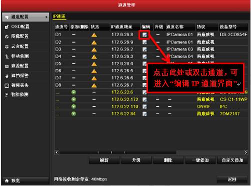 解決方法:通道管理--IP通道中,選擇已有通道,點(diǎn)擊編輯,選擇添加模式“手動添加”。