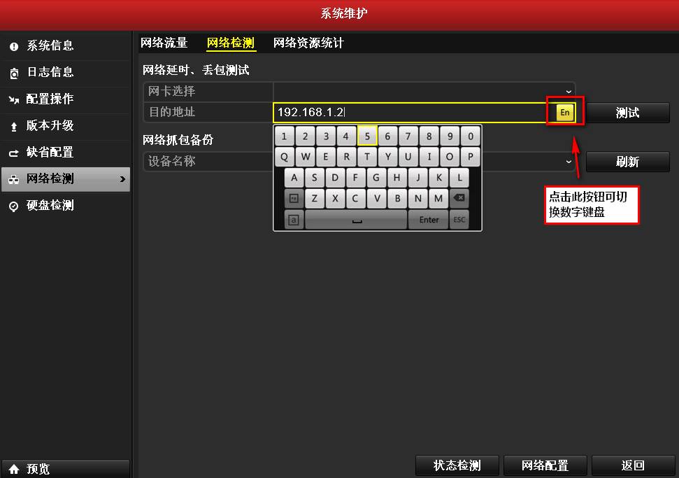 上述兩步如果都嘗試了,還是不行,可能是網(wǎng)絡(luò)本身傳輸就有問(wèn)題,建議進(jìn)入主菜單-系統(tǒng)維護(hù)-網(wǎng)絡(luò)檢測(cè)-網(wǎng)絡(luò)檢測(cè)-目的地址內(nèi),輸入攝像機(jī)的IPV4地址測(cè)試,看是否有丟包延時(shí)現(xiàn)象。