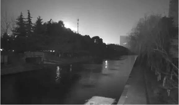 晚上21:52,普通球機(jī)已經(jīng)切換為黑白模式