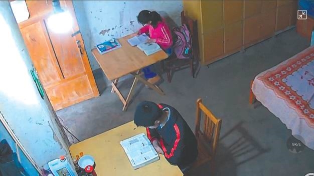 監(jiān)控設(shè)備是何自兵花幾百元在網(wǎng)上買的,每個周末,只要小嫣兄妹倆放假回老家,在該做作業(yè)的時間段內(nèi),何自兵都會抽時間在手機上點開與老家監(jiān)控設(shè)備綁定的APP登錄賬號,監(jiān)督倆孩子做作業(yè)的情況,有時候是糾正女兒寫作業(yè)的坐姿,有時候要提醒做作業(yè)“開小差”的兒子。
